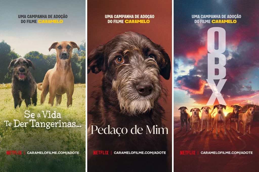 Para espalhar essa mensagem de amor, a Netflix substituiu os cartazes de produções queridas do público — como Sintonia, Guerreiras do K-Pop, Outer Banks, Pedaço de Mim, Se a Vida Te Der Tangerinas, De Volta aos 15 e Racionais: Das Ruas de São Paulo Pro Mundo — por imagens de cães reais que esperam por um lar.